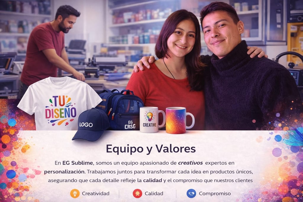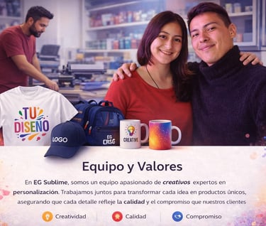 "En EG Sublime transformamos ideas en productos personalizados de alta calidad. Nos especializamos en sublimación y serigrafía para ofrecer soluciones únicas y creativas, ayudando a empresas, emprendedores y personas que buscan productos distintos. Nos destacamos por nuestra creatividad, calidad y atención personalizada, asegurando que cada producto refleje la identidad y estilo de nuestros clientes."